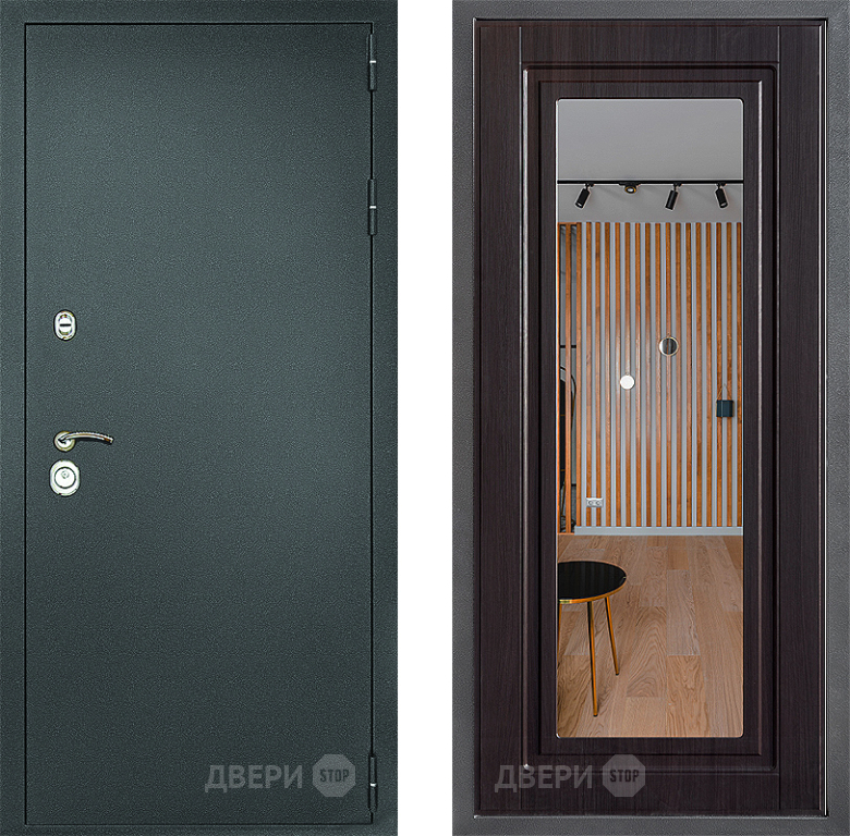 Входная Дверь Дверной континент Рубикон Серебро Дизайн ФЛЗ Зеркало Венге 860x2050 мм