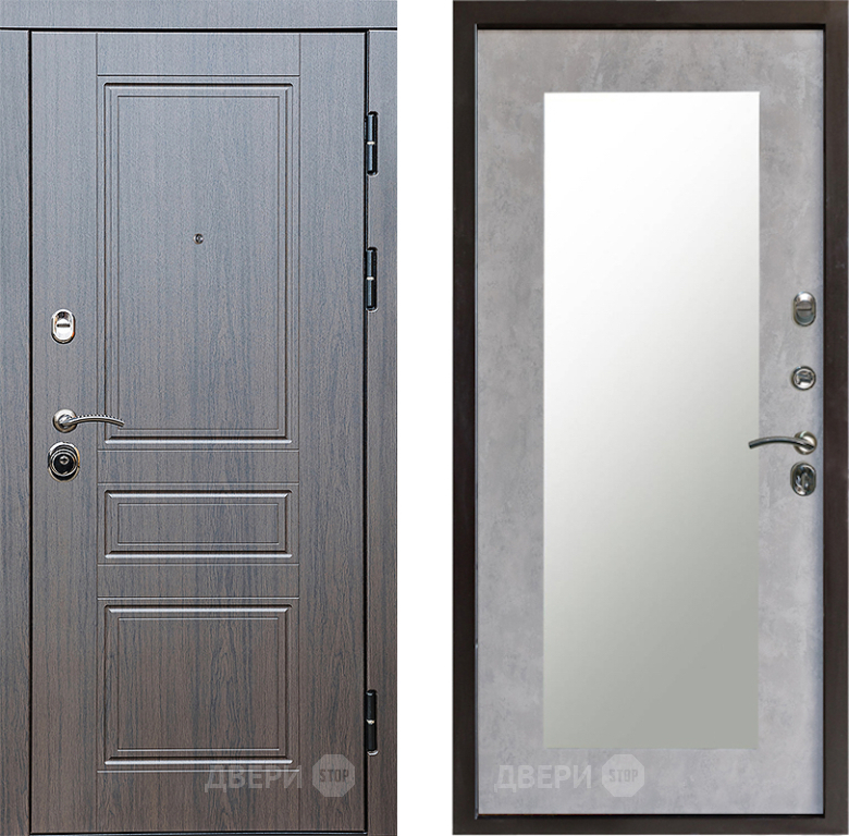 Входная Дверь Престиж Классика Венге Зеркло Пастораль Бетон светлый 960x2050 мм