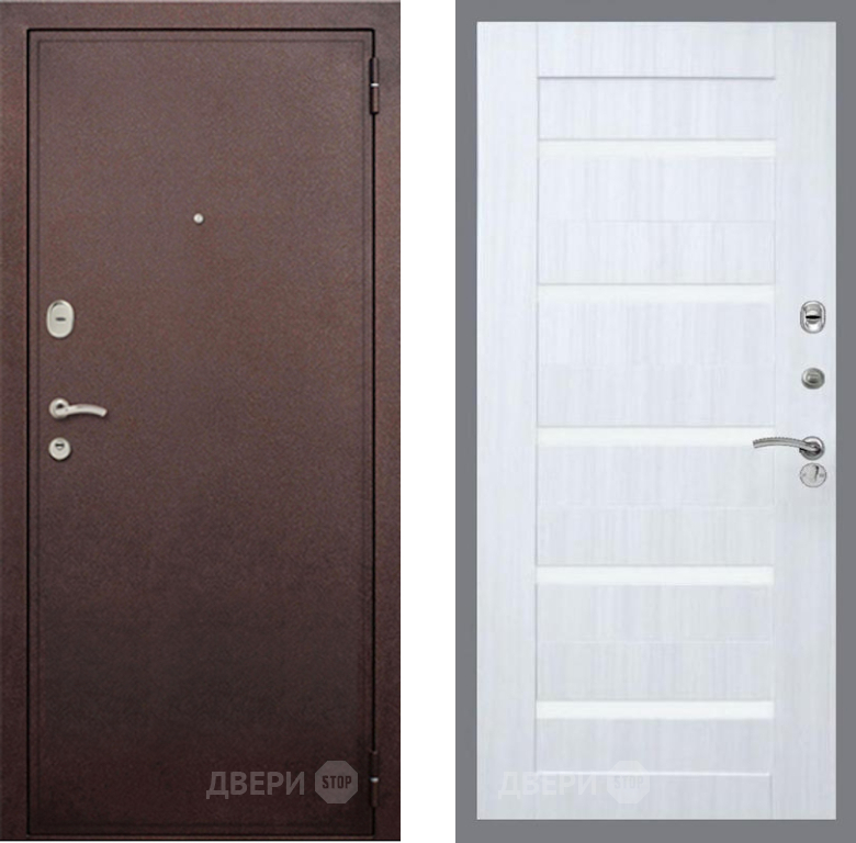 Входная Дверь Рекс (REX) 2 Медный Антик СБ-14 стекло белое Сандал белый 960x2050 мм