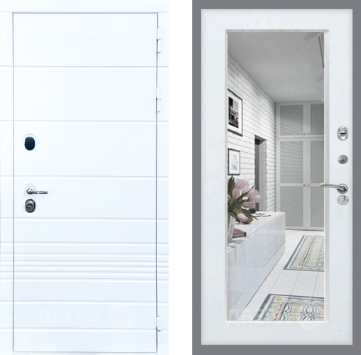 Входная Дверь Стоп ТРЕНДО Зеркало Белый ясень 860x2050 мм